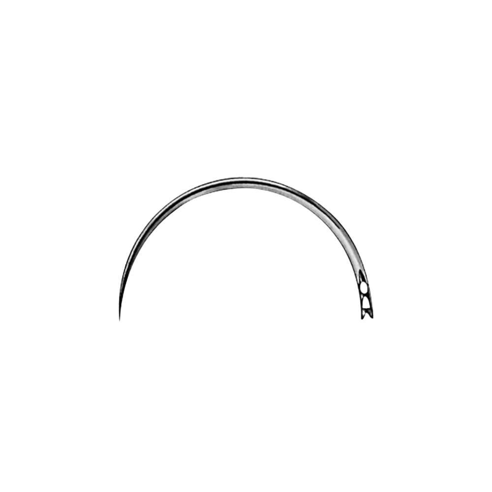 Aguja Viuda Curva Triangular – Caja de 12 uds Aguja quirúrgica curva con punta triangular de corte, ideal para suturas en tejidos resistentes. Presentación en caja de 12 unidades.