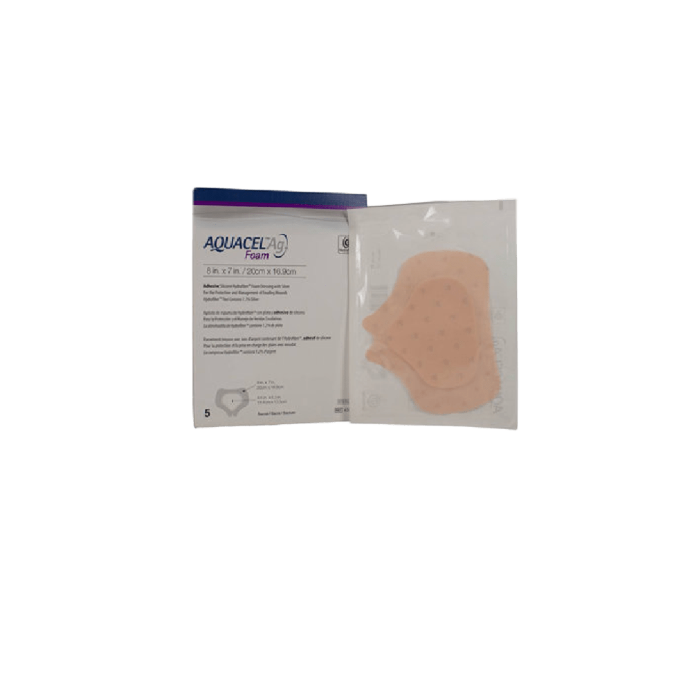 Apósito AQUACEL® Ag+ Extra de hidrofibra con hidrocoloide, plata iónica, EDTA y cloruro de benzetonio, disponible en varios tamaños. Ofrece tecnología Hydrofiber® de doble capa para máxima absorción, retención y gelificación, evitando la expansión lateral del exudado. Su acción bactericida y control de biofilm favorecen la cicatrización y prolongan el tiempo de permanencia. El entrelazado de fibras reforzantes facilita la retirada en una sola pieza y su envase estéril garantiza seguridad en cada uso