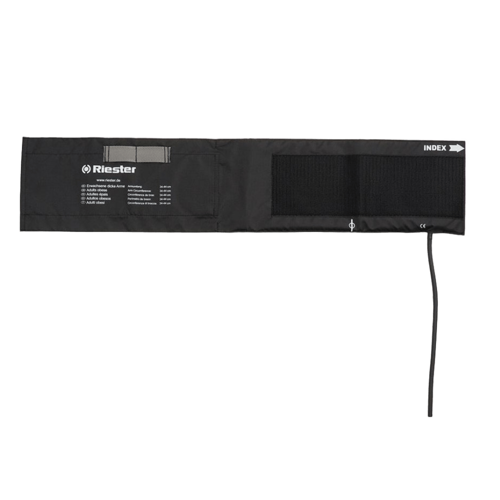 Brazalete Adulto Obeso Riester – 1 salida Brazalete reforzado para tensiómetro aneroide Riester, con una salida. Medidas: 70 × 15 cm. Especial para pacientes con brazo de mayor perímetro.