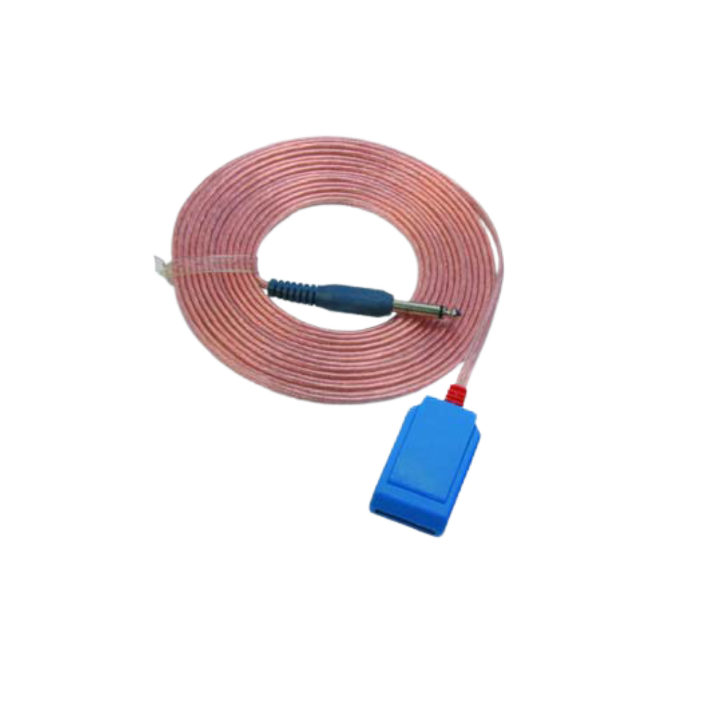Cable placa paciente sistema REM 5 metros – Conexión segura y universal para electrocirugía Cable bipolar universal de 5 metros con pinza de fijación y conectores compatibles con múltiples dispositivos electroquirúrgicos. Libre de látex.