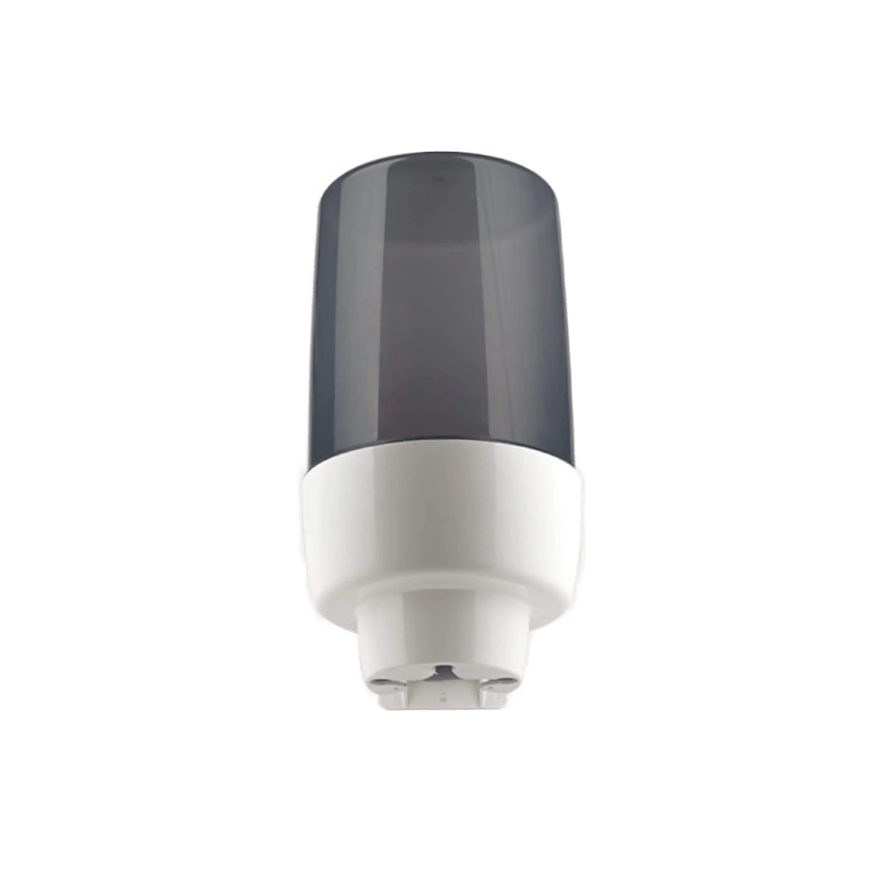 Dispensador Papel Mecha Mini – Compacto, higiénico y práctico para entornos sanitarios Dispensador para papel mecha o tissue mini, con apertura superior para acople directo de la bobina. Base en color blanco y tapa en cristal transparente (fumé).