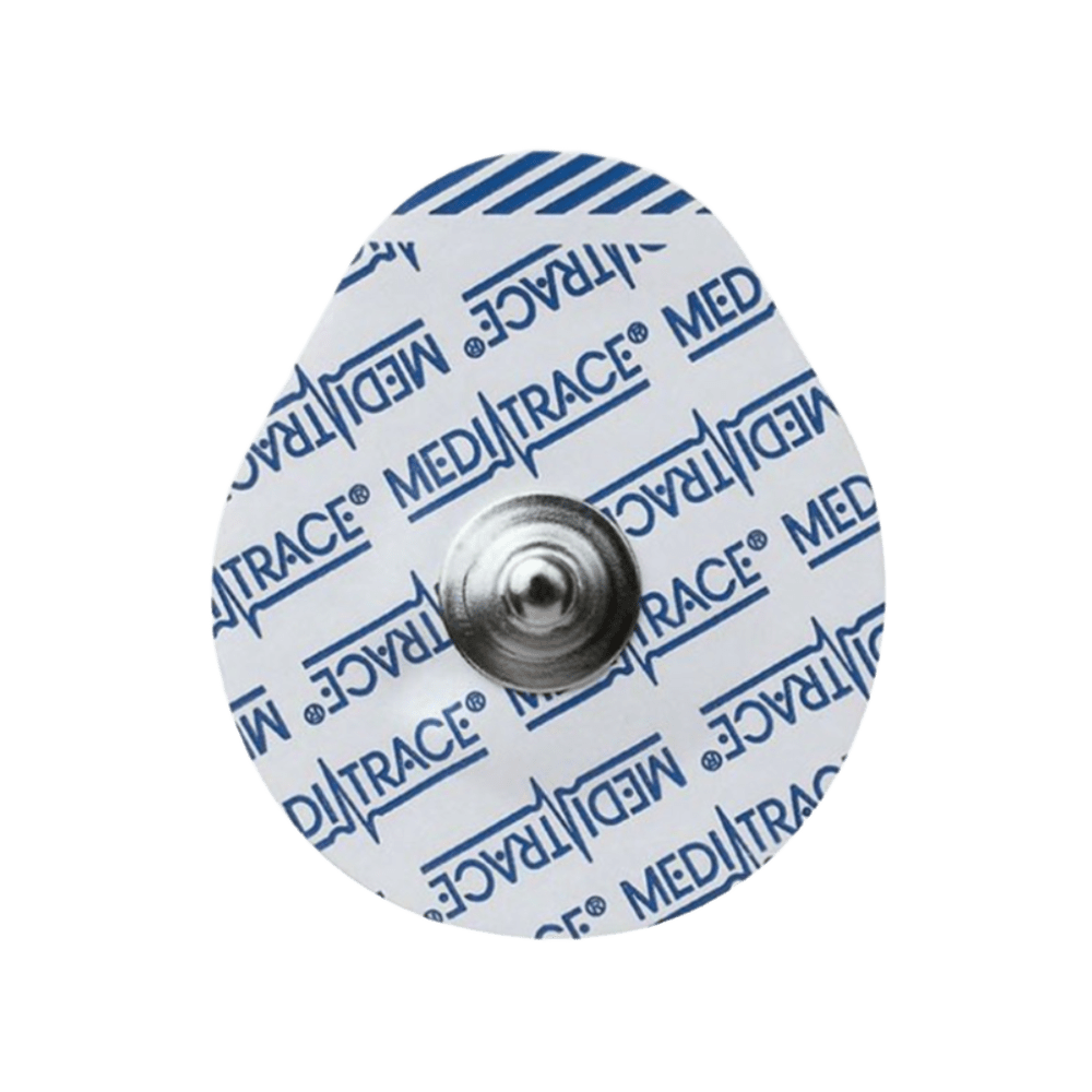 Electrodo Kendall™ ECG de hidrogel sólido con adhesivo suave Electrodo en forma de lágrima, con adhesivo suave para una fijación inmediata y segura, ideal para monitorización cardíaca sin dejar residuos en la piel.