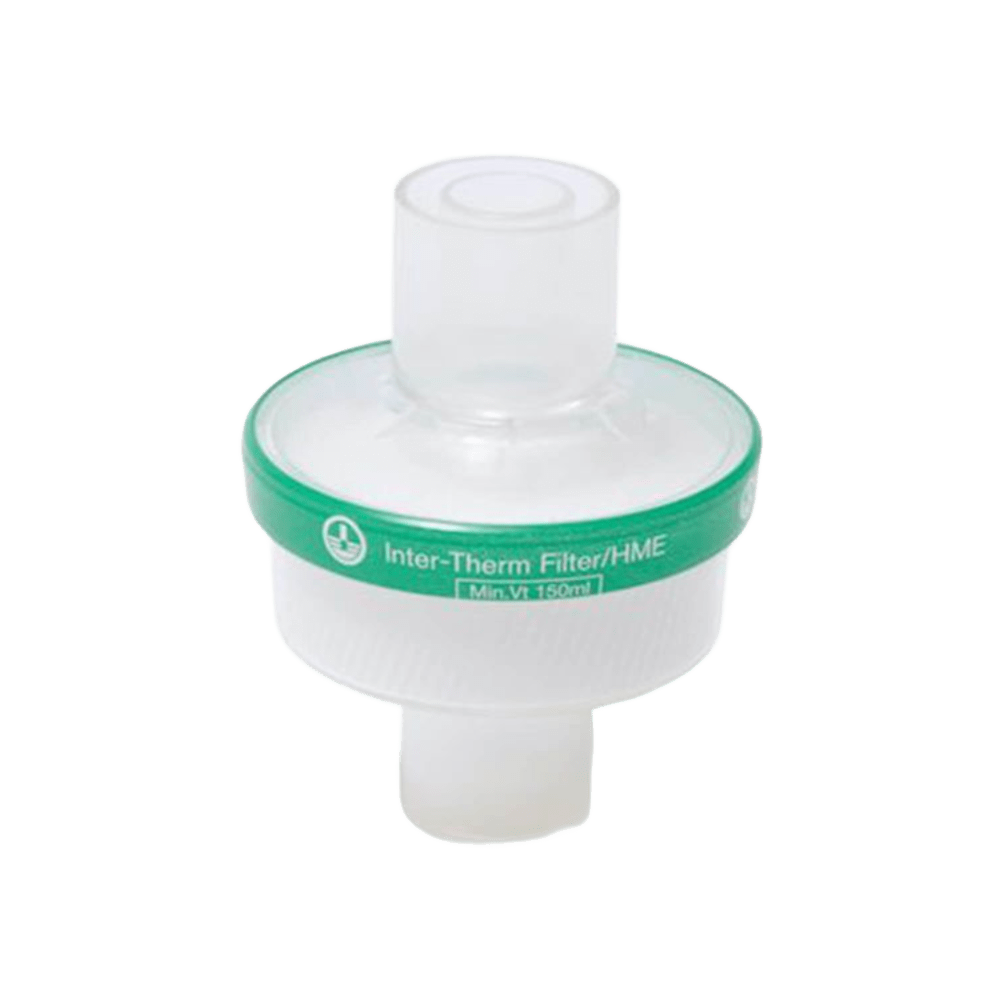Filtro “Inter-Therm” – Protección bacteriana con humidificación Filtro HMEF estéril de un solo uso, con alta eficacia de filtración, carcasa transparente, tapón de seguridad y mecanismo antioclusión.