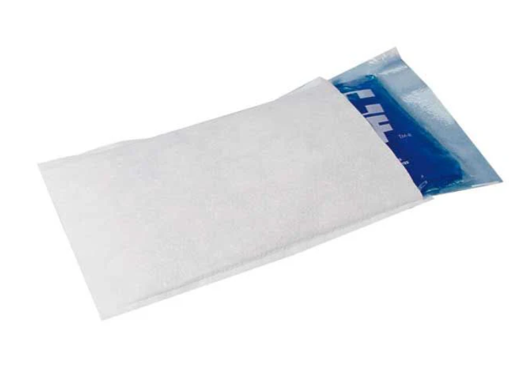 Funda desechable para frío, polipropileno blanco, 15x30 cm, 25 g. Protege la piel en terapias frías. Caja 50 uds.