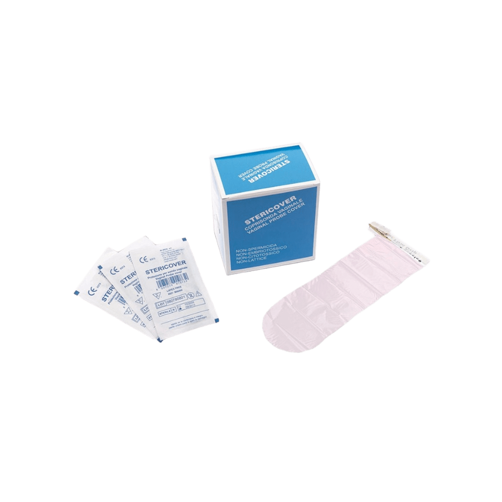 Funda de Sonda Vaginal EVA Estéril – Caja 50 uds Funda estéril para sondas transvaginales. Fabricada en EVA, libre de látex, no espermicida, no embriotóxica ni citotóxica. Medidas: 21,5 × 7 cm.