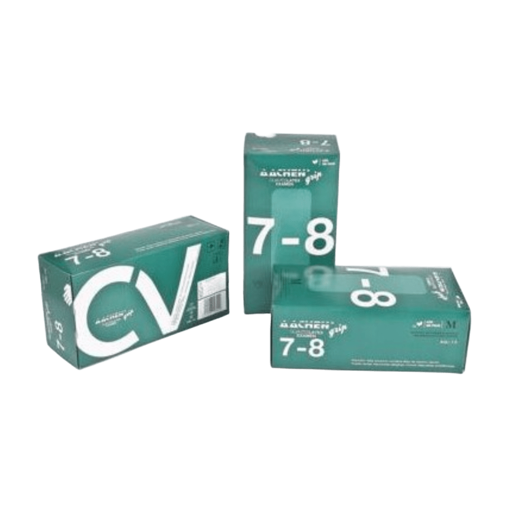 Guante Látex Sin Polvo Aachengrip – Alto Riesgo – Protección reforzada para entornos exigentes El guante Aachengrip Alto Riesgo está fabricado con látex de caucho natural de alta calidad, sin polvo, con un diseño optimizado para máxima protección, comodidad y resistencia. Su color azul, su puño largo anatómico (> 7 cm) con reborde anti-goteo y su superficie ligeramente texturada en dedos y palma lo convierten en una excelente opción para profesionales que trabajan con productos químicos, agentes biológicos o fármacos citostáticos. Cuenta con una superficie interna lisa y clorinada, que facilita el calzado y disminuye el riesgo de dermatitis. Además, está fabricado con niveles no detectables de residuos de vulcanización (como tiazoles, carbamatos y tiorureas), lo que reduce el riesgo de sensibilización dérmica. Es ambidiestro, muy elástico y resistente, y apto para el contacto con alimentos (excepto ácidos), lo que lo hace ideal tanto para uso sanitario como en industria. Características destacadas: • Fabricado en látex natural, sin polvo • Color azul – ambidiestro • Textura antideslizante en palma y dedos • Puño largo anatómico (>7 cm) con reborde anti-goteo • Superficie interna clorinada – reduce el riesgo de dermatitis • Alta resistencia y elasticidad • Apto para contacto alimentario (excepto ácidos) • Protección frente a químicos (Tipo B), biológicos y citostáticos • Presentación en caja – varias tallas disponibles