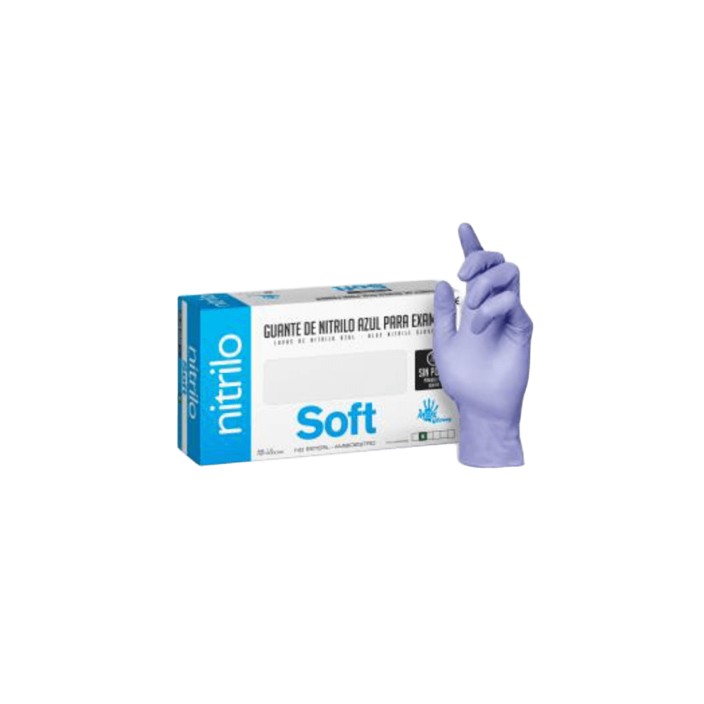 Guante nitrilo sin polvo azul Soft – Caja de 100 unidades. Guante de Nitrilo 100%, Ambidiestros, sin empolvar y con puño enrollado-reforzado para una mejor adaptación.
