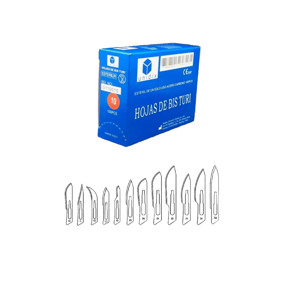 | 0110010 | HOJA DE BISTURÍ ESTÉRIL UNIDIX Nº 10 - CAJA DE 100 UDS | 5,71 € | Disponible(531 uds. en almacén) | -0+99999 |