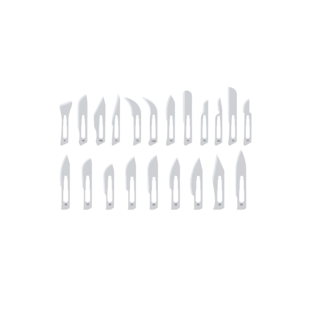 Hoja de bisturí estéril RAZORMED – Caja de 100 unidades. Hoja de bisturí desechable y estéril, compatible con mangos ISO 7740, disponible en varios tamaños y esterilizados por radiación gamma.