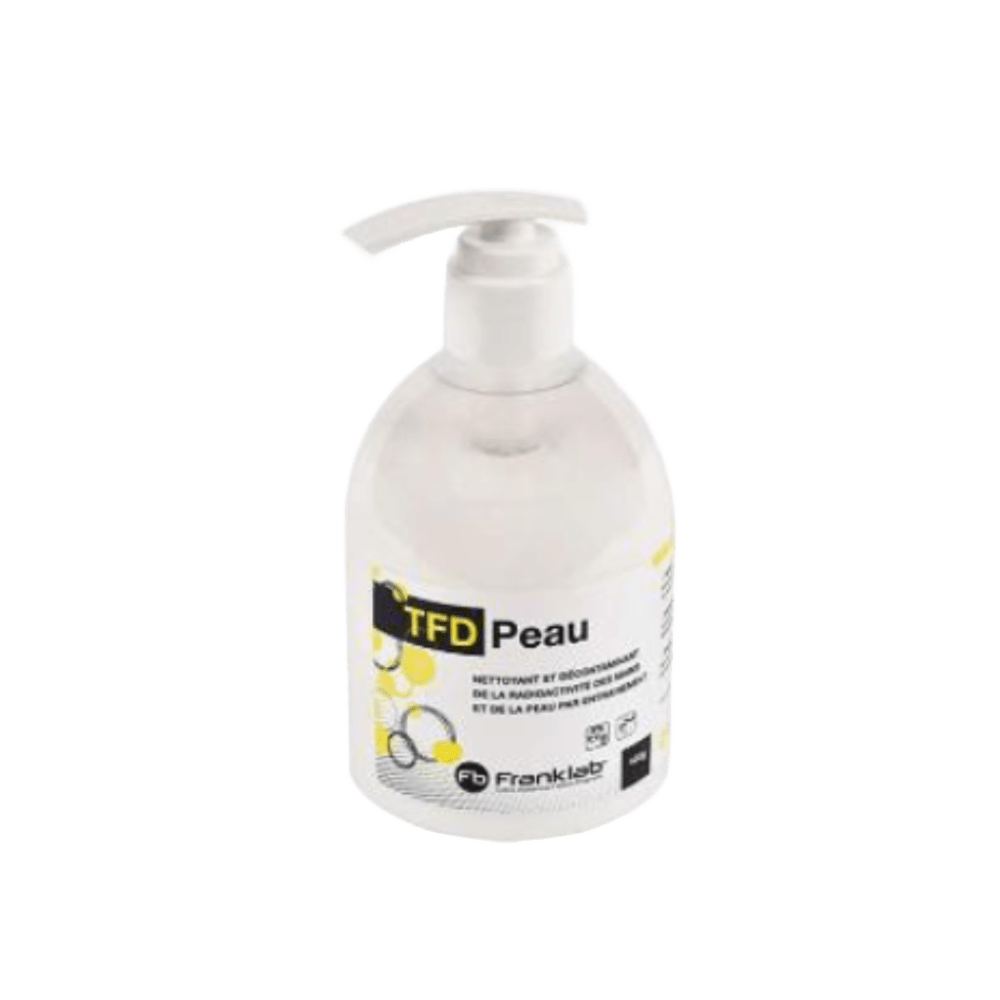 TFDS Jabón y descontaminante de radioactividad para manos y piel – Protección y cuidado diario en Medicina Nuclear El TFDS es un jabón diseñado específicamente para la limpieza y descontaminación de radioactividad en manos y piel, especialmente indicado para el personal de Servicios de Medicina Nuclear. Su fórmula especializada permite eliminar hasta el 97% de la radioactividad inicial, brindando una alta eficacia descontaminante tras la manipulación de radioisótopos. Gracias a su pH neutro y contenido de glicerina, el TFDS proporciona un efecto suavizante y respetuoso con la piel, permitiendo su uso frecuente sin causar irritaciones, sequedad o daños cutáneos. Su acción limpiadora, combinada con propiedades descontaminantes, lo convierten en un producto seguro y preventivo para el personal expuesto a fuentes radiactivas. Diseñado para ofrecer protección continua en entornos hospitalarios y de investigación donde la descontaminación diaria es esencial. Características destacadas: • Descontaminante de radioactividad para manos y piel • Elimina hasta el 97% de la radioactividad inicial • pH neutro, apto para uso frecuente • Contiene glicerina: efecto suavizante y protector de la piel • Limpieza segura y eficaz en Medicina Nuclear • Prevención diaria frente a la contaminación radiactiva .