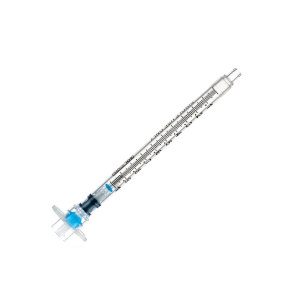 SOL-CARE™ TB Jeringa de Seguridad con Aguja Fija Jeringa de seguridad diseñada para la administración segura de medicamentos o vacunas y extracción de fluidos, con mecanismo de protección contra pinchazos accidentales.