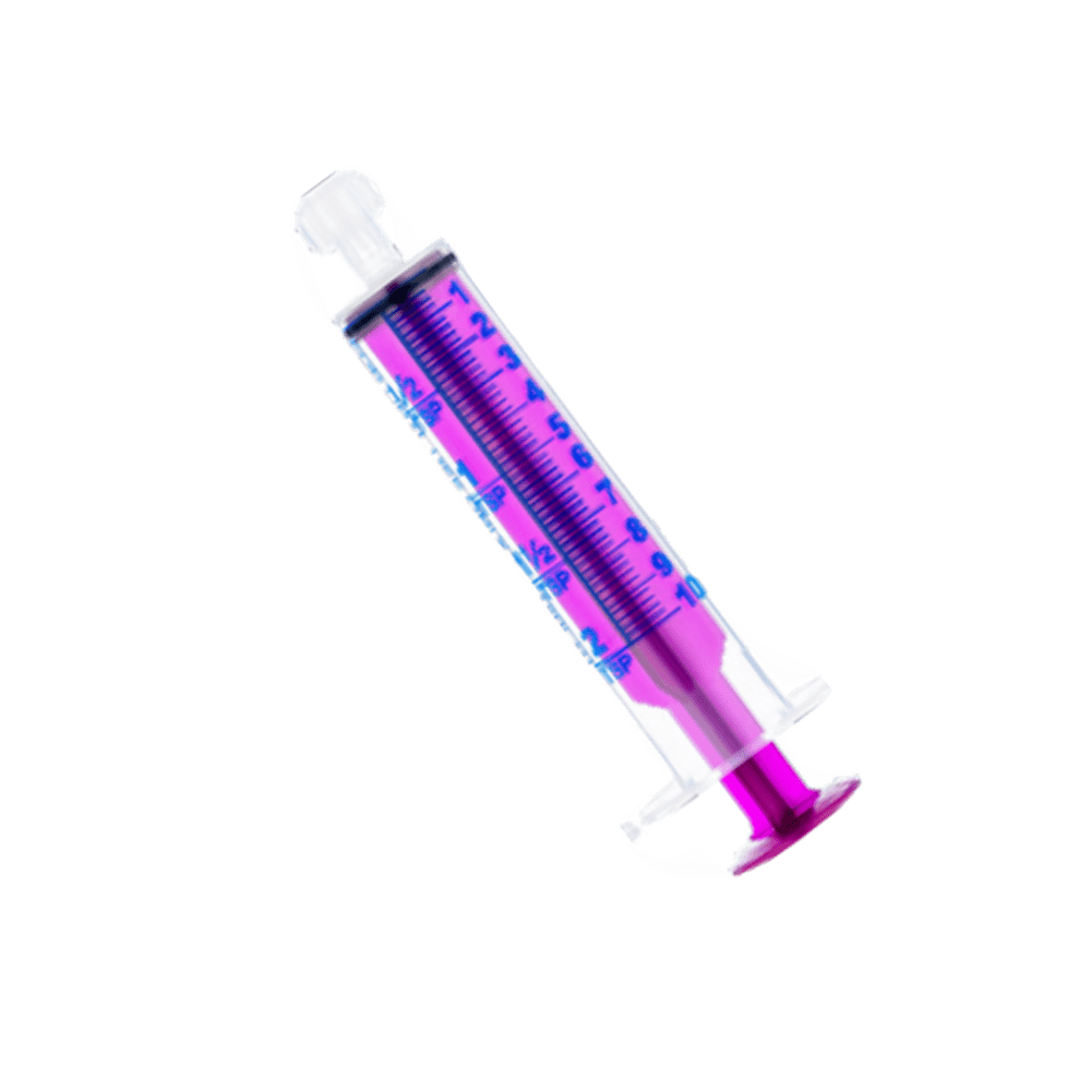 Jeringa Oral SOL-M™ con Émbolo Morado y Tapón Jeringa estéril para administración oral de medicamentos líquidos. No compatible con conexiones luer o agujas hipodérmicas. Émbolo morado para fácil identificación y tapón de cierre.