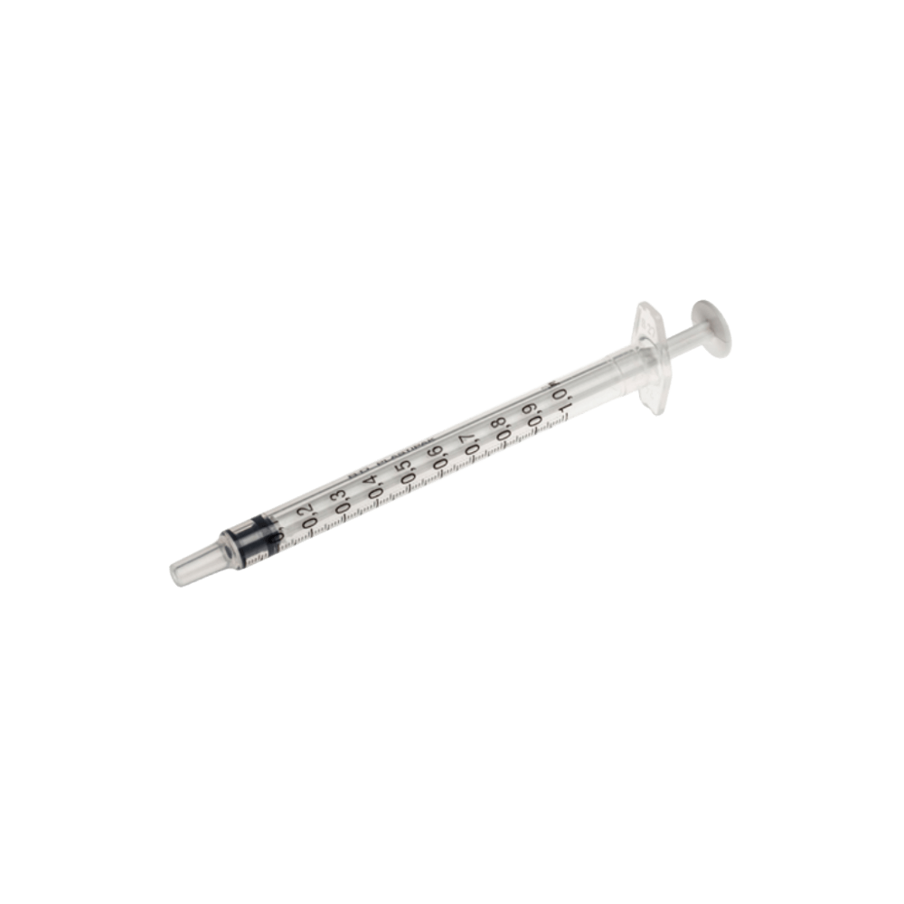 Jeringa de 3 cuerpos centesimal 1 ml – Máxima precisión en microdosificación Capacidad de 1 ml con escala centesimal. Cilindro transparente, deslizamiento suave, estéril, libre de látex y sin aguja. Ideal para aplicaciones que requieren alta exactitud en la dosificación.