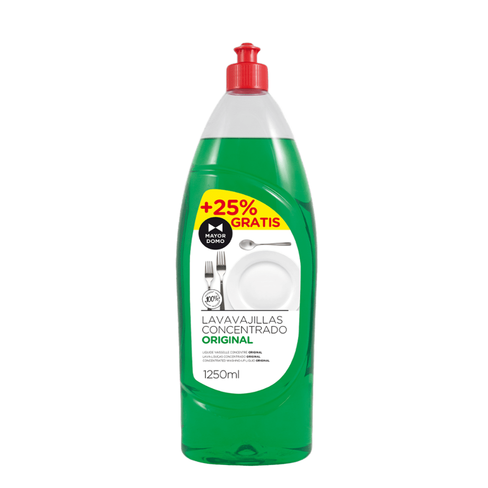 Lavavajillas manual verde 1,25L – Limpieza concentrada y brillante para tu vajilla El Lavavajillas manual verde 1,25L está formulado para una limpieza eficaz de la vajilla a mano. Su fórmula concentrada elimina fácilmente la grasa, restos de comida y suciedad, dejando los platos, vasos y utensilios limpios y brillantes. Ideal para el uso diario en el hogar, garantiza un excelente rendimiento incluso con pequeñas cantidades de producto. Características destacadas: • Fórmula concentrada de alto rendimiento • Elimina grasa y suciedad con facilidad • Deja la vajilla limpia y brillante • Ideal para uso doméstico diario • Envase práctico de 1,25 litros .