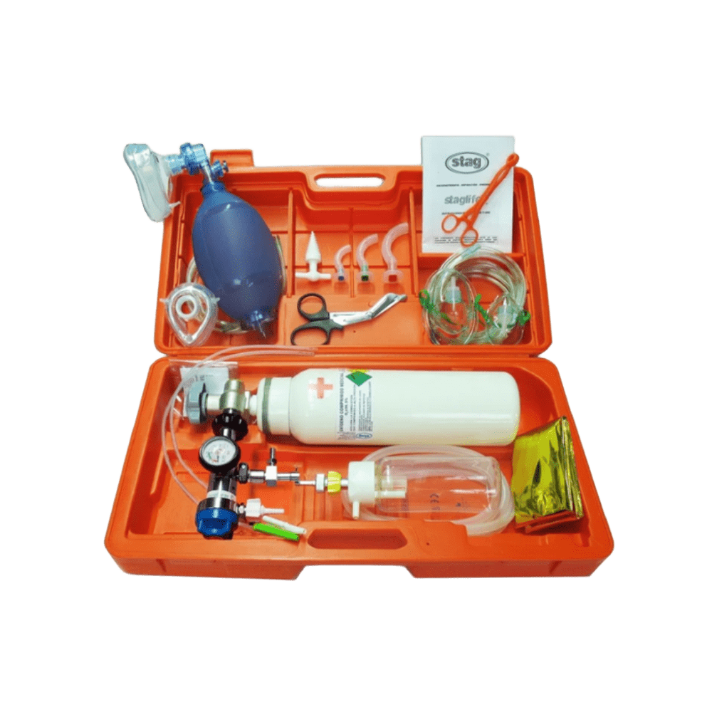 Equipo de Emergencia E-420D – Kit portátil completo para soporte respiratorio en emergencias Maleta de emergencia equipada con aspirador Venturi, reanimador manual, oxígeno medicinal y accesorios esenciales para atención respiratoria y primeros auxilios.