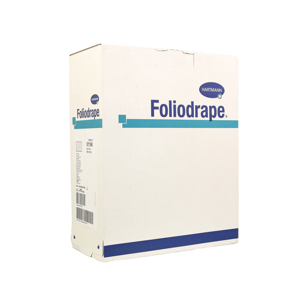Paño adhesivo fenestrado Foliodrape 75 × 90 cm – Estéril, caja 40 unidades Paño quirúrgico de dos capas, impermeable y confortable. Con zona adhesiva alrededor de la abertura para fijación segura. Barrera eficaz contra humedad y bacterias.