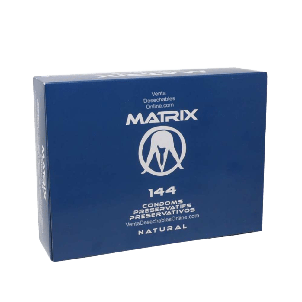 Preservativo Matrix 54 mm Blue – Protección segura y cómoda Preservativos de látex natural, lisos, lubricados, transparentes, con depósito. Diámetro 54 mm. Caja de 144 unidades.