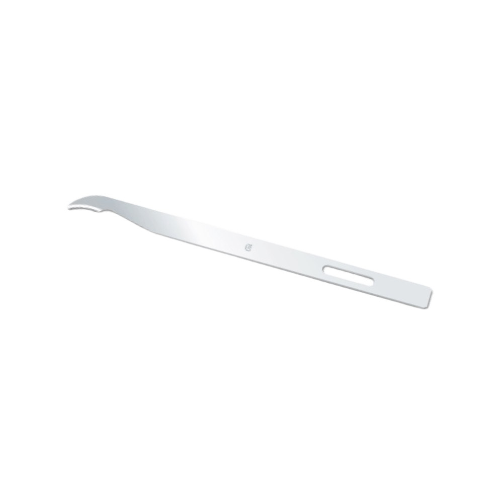 La hoja larga está especialmente diseñada para facilitar la retirada de puntos de sutura de manera eficiente y segura. Su forma y tamaño han sido pensados para cortar una amplia variedad de hilos de sutura disponibles en el mercado, garantizando un desempeño óptimo en diferentes tipos de intervenciones. Además, esta hoja se puede utilizar directamente sin necesidad de montarla en un mango, lo que simplifica su uso y agiliza el procedimiento. Gracias a su diseño, contribuye a minimizar las molestias y el malestar del paciente durante la extracción de los puntos, haciendo que el proceso sea más cómodo tanto para el profesional sanitario como para quien recibe el tratamiento. - Propiedades de la Hoja • Material: Acero quirúrgico de carbono • Longitud: 11 cm • Marcado: Grabado con indicativo SC “STITCH CUTTER” • Presentación: Empaque en papel aluminizado sellado - Beneficios • Material y calidad: o Hoja de acero al carbono con acabado liso y sin rebabas o Mayor durabilidad y filo óptimo con el paso del tiempo • Identificación: o Diseño y grabado para fácil reconocimiento y distinción de hojas • Empaque: o Papel aluminizado con inhibidor de corrosión o Solapas para apertura fácil y controlada, manteniendo la esterilidad o Caja dispensadora para almacenamiento seguro y extracción individual • Durabilidad: o Vida útil garantizada de 5 años en condiciones óptimas • Seguridad: o Libre de látex y níquel .