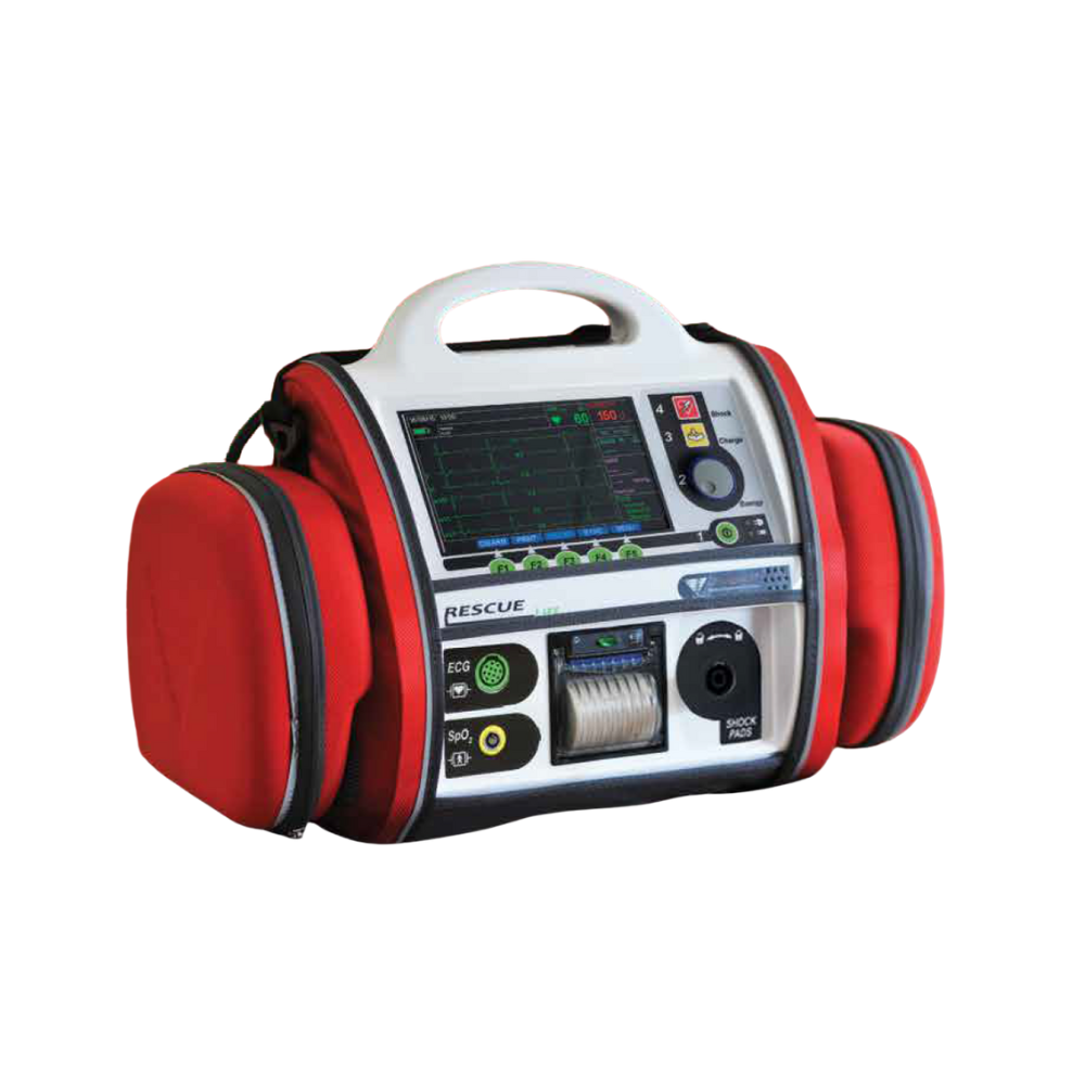 RESCUE LIFE – Monitor Desfibrilador con ECG de 12 derivaciones, DEA, detección de marcapasos e impresora térmica Monitor desfibrilador avanzado con pantalla a color de 7”, funciones de ECG simultáneo (3, 6, 12 derivaciones), detección de marcapasos y modo DEA.