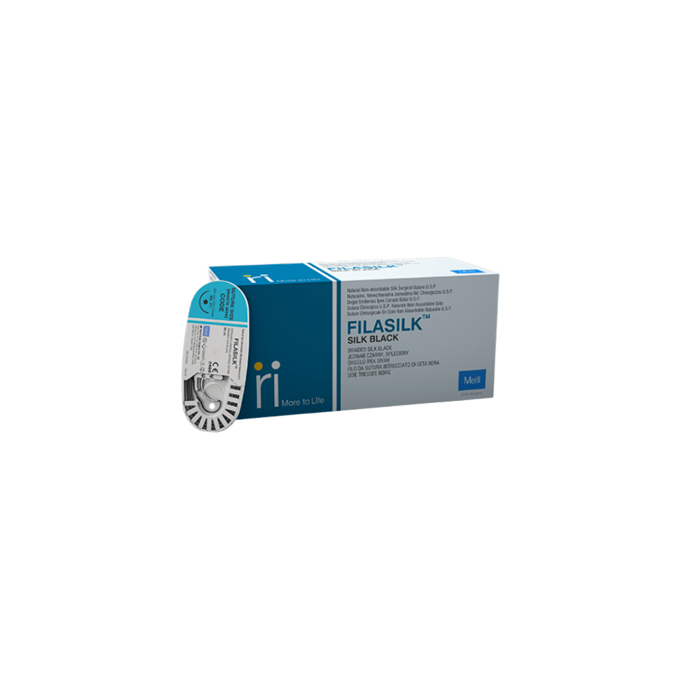 Filasilk™ es una sutura quirúrgica de origen natural, no absorbible, compuesta por fibroína de seda obtenida del gusano de seda Bombyx mori. Trenzada para mejorar su resistencia y flexibilidad, está diseñada para aplicaciones generales de aproximación y ligadura de tejidos blandos, incluyendo procedimientos oftálmicos. Fabricada bajo condiciones estrictamente controladas en salas blancas ISO Clase 8, Filasilk™ cumple con los estándares establecidos por la Farmacopea Estadounidense (USP) y la Farmacopea Europea (EP) para suturas no absorbibles de seda trenzada. - Características principales: • Origen natural: Compuesta por fibroína, una proteína orgánica de la especie Bombyx mori (familia Bombycidae). • Tipo: Sutura quirúrgica trenzada, no absorbible. • Revestimiento: Recubierta con cera de abejas para facilitar el paso por los tejidos. • Color: Negra (teñida con D&C Negra n.º 4) mediante extracto natural de Logwood. • Calibres disponibles: Desde USP 9-0 (EP 0.3) hasta USP 3 (EP 6). • Presentación: Disponible con o sin aguja, en múltiples calibres y longitudes. • Reacción tisular: Mínima respuesta inflamatoria con encapsulación progresiva por tejido conectivo fibroso. • Fuerza tensil: Aunque no es absorbible, puede presentar una pérdida gradual de fuerza por degradación proteica in vivo. • Indicaciones: Apropiada para aproximación y ligadura de tejidos blandos, incluyendo cirugía oftálmica. • No antigénica ni pirogénica: Alta compatibilidad con los tejidos. • Empaque especializado: o Primario: En soporte que minimiza la memoria del hilo, en sobres sellados que conservan su esterilidad. o Secundario: Caja dispensadora con sobres individuales e Instrucciones de uso (IFU). • Cumplimiento normativo: Conforme a la Directiva 93/42/CEE y su modificación 2007/47/CEE. • Fabricante: Meril Endo Surgery Pvt. Ltd., India. Filasilk™ combina la tradición de la seda quirúrgica con procesos de fabricación modernos, garantizando seguridad, suavidad al tejido y rendimiento confiable en una amplia gama de intervenciones quirúrgicas.