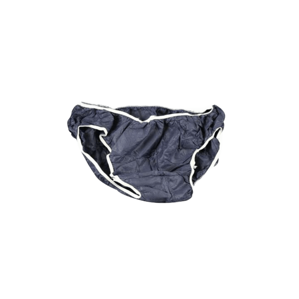 Slip de tejido sin tejer en color azul. Ideado para proporcionar al usuario intimidad durante la realización de diferentes procedimientos o técnicas. Un solo uso, desechable. Propiedades Fabricado en Polipropileno (PP) • Apariencia: Azul oscuro con elástico en blanco. • Elástico en los muslos y cintura. • Gramaje: 40 g/m2 BENEFICIOS › Su fabricación en polipropileno ofrece un ambiente transpirable y permeable. › El polipropileno no es químicamente reactivo por lo que resulta ideal para productos que están en contacto directo con la piel. › Gran flexibilidad y completa adaptación al cuerpo del usuario. › Muy ligero de llevar, suave y cómodo. › Material resistente adecuado para el tiempo de uso de estas prendas. › Su uso favorece la higiene del usuario. › Hipoalergénico y 100% exento de látex.