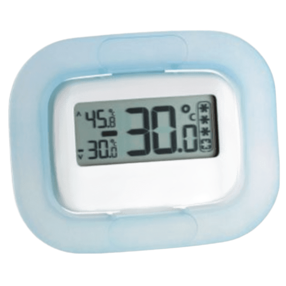 Este termómetro está diseñado especialmente para su uso en neveras y congeladores, permitiendo un control preciso y constante de la temperatura interior. Cuenta con un soporte estable y un marco de montaje que ofrece gran versatilidad, ya que puede colocarse tanto sobre superficies planas como instalarse detrás de un cristal, facilitando su visualización sin necesidad de abrir la puerta del equipo. Es una herramienta ideal para garantizar el correcto almacenamiento de alimentos, medicamentos u otros productos sensibles a la temperatura. Su diseño sencillo y funcional lo convierte en una opción práctica para entornos domésticos, comerciales o profesionales, donde mantener la cadena de frío es esencial. Características • Este termómetro tiene un rango de medición de -30ºC a +50ºC, ideal para aplicaciones en entornos de frío y congelación. • Incorpora símbolos de frío para indicar cuando la temperatura está fuera del rango óptimo, y cuenta con una memoria de valores máximos y mínimos alcanzados, lo que facilita el seguimiento del control térmico. • Funciona con una pila CR2032 • Su tamaño compacto de 91 x 72 x 13 mm lo hace fácil de instalar y utilizar en cualquier espacio. • Además, es ligero, con un peso de solo 36g, lo que lo convierte en una opción práctica y eficiente para el control de temperaturas en diversos entornos. .