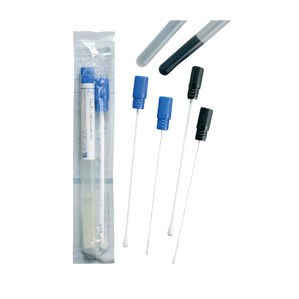Torunda Estéril con Medio Amies – Transporte Seguro de Muestras Escobillón estéril con varilla plástica y medio Amies en tubo individual. Conserva la viabilidad microbiana durante el transporte al laboratorio.