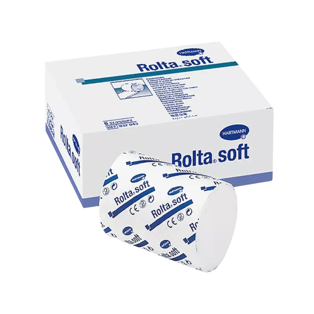 Rolta Soft – Venda de relleno sintética suave y transpirable para acolchado bajo vendajes Rolta Soft es una venda almohadillada de fibras de poliéster rizado, muy blanda y fabricada con material no absorbente, ideal para su uso como acolchado debajo de vendas de yeso, vendajes de soporte o compresión. Está especialmente indicada para pieles sensibles gracias a su textura suave y transpirable. Ofrece una aplicación segura y fácil, con extensibilidad longitudinal y transversal, lo que permite una adaptación anatómica precisa. Es permeable al aire y al exudado, favoreciendo la ventilación y reduciendo el riesgo de maceración. Además, no absorbe los rayos X, por lo que puede permanecer colocada durante estudios radiológicos, y es esterilizable, permitiendo su uso en entornos clínicos controlados. Beneficios destacados: • Permeable al aire y exudados • Aplicación segura y sencilla • Extensible en ambas direcciones • Transpirable y suave con la piel sensible • Radiotransparente (impermeable a rayos X) • Esterilizable • Uso como acolchado bajo vendajes de yeso o compresión